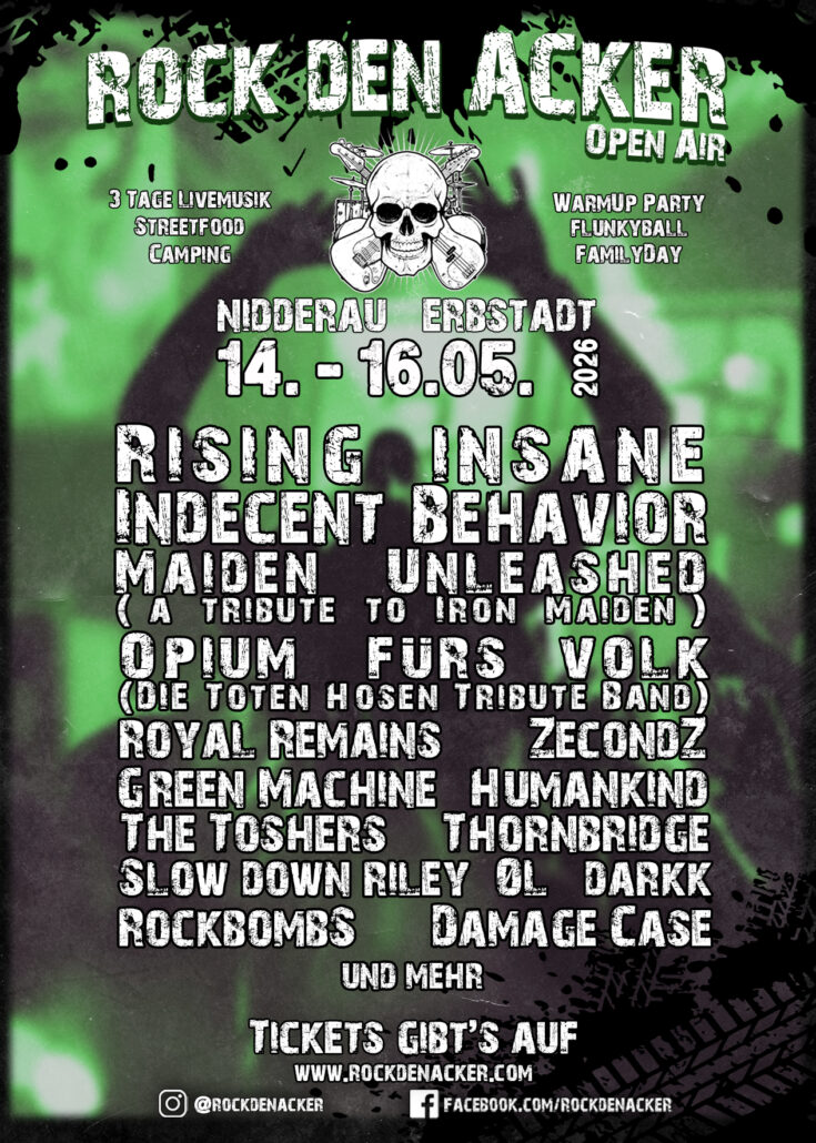 Ab sofort könnt Ihr online (print@home) und bei unseren lokalen Partnern (Hardtickets) Tickets für das ROCK DEN ACKER OPEN AIR 2026 erwerben!